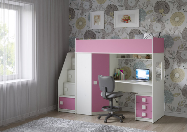 Учебная зона со столом под спальным местом открывает возможности для письменных работ, а также здесь удобно расположить ноутбук. Тумба Л-04 обеспечит хранеие канцелярских принадлежностей и учебников.